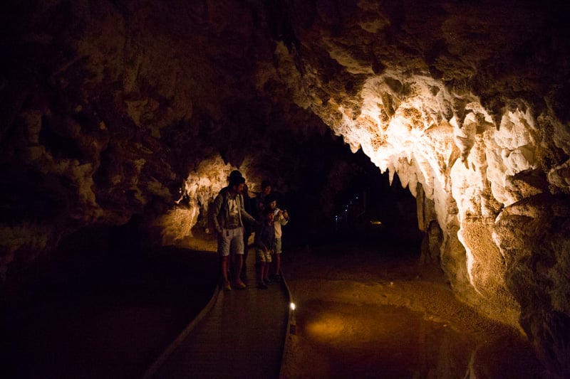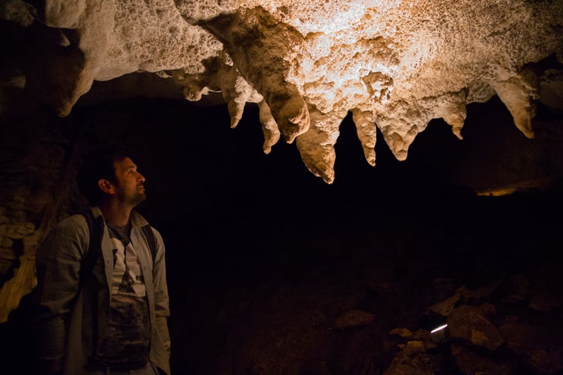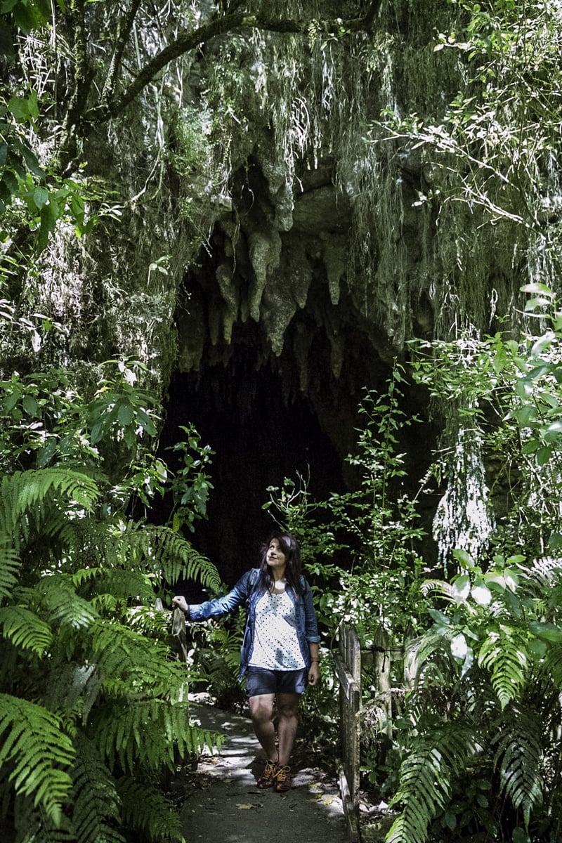 After the first leg of our New Zealand road trip of North Island earlier this year, we drove to Waitomo and stayed in a charming little country cottage. We had booked ourselves in for the three hour Spellbound cave tours and the adventure we had while caving in the Spirit Caves and the Glow Worm Caves was truly the highlight of our trip to New Zealand. On a bumpy, dirt road drive to the mouth of the caves with Emma (best tour guide ever!), we learned about and saw tomos (spectacular sinkholes in the ground that swallowed up cattle and led to the discovery of many caves underneath in the Waitomo region). Walking up to the cascading creepers forming a living, shimmering curtain at the entrance of the cave, we felt the temperature drop by fifteen degrees. It was dark and eerie as we walked the undulating 700 meter recycled plastic walkway inside the cave and observed the stalactites, stalagmites, tomo openings and scary tunnels and holes that were still undiscovered. Later with helmets and headlamps on, we crossed a little bridge into the Glow Worm caves and floated in awe on a raft boat under a ceiling lit up with a million glow worms, an amazing out of this world experience to the purest fairy lights nature could rustle up for us.